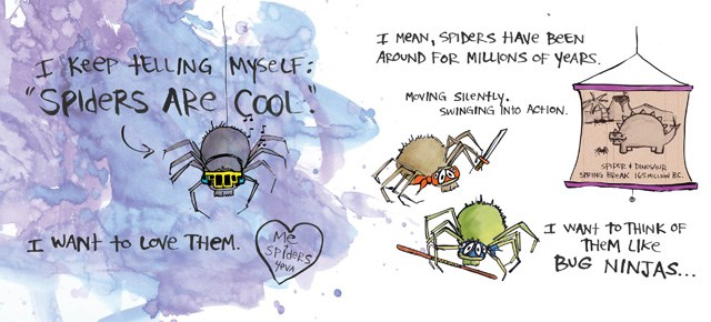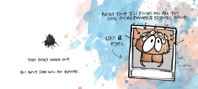 I’m Trying to Love Spiders will help you see these amazing arachnids in a whole new light, from their awesomely excessive eight eyes, to the seventy-five pounds of bugs a spider can eat in a single year! And you’re sure to feel better knowing you have a better chance of being struck by lightning than being fatally bit by a spider. Comforting, right? No? Either way, there’s heaps more information in here to help you forget your fears . . . or at least laugh a lot!