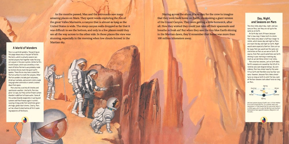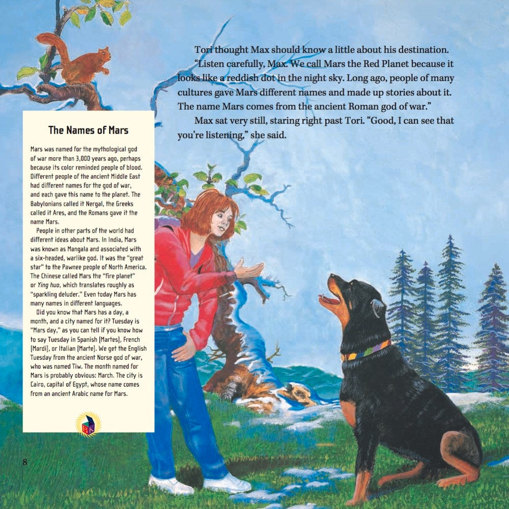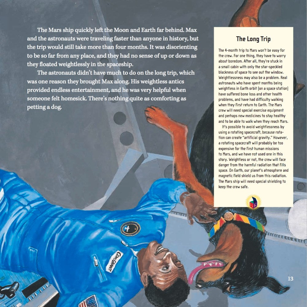 Come with Max as he takes off on his next exciting science adventure, this time joining astronauts on the first human mission to Mars. Equipped with a specially designed spacesuit, Max sniffs for signs of microscopic life. Will he find any? Read the exciting story to find out, and to learn how his trip to Mars helps his young friend Tori reflect on the beauty and fragility of our own planet Earth. Max Goes to Mars is more than just a fun story. Educationally designed “Big Kid Boxes” along the sides of the pages help children and parents learn about Mars as the adventure unfolds. This second edition is fully updated to incorporate the latest scientific discoveries about Mars.