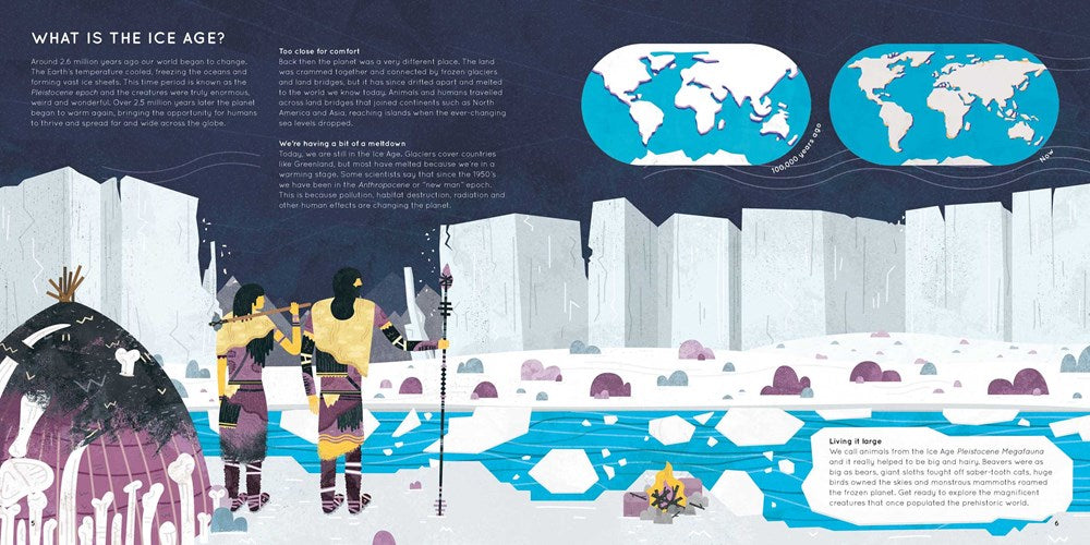 The Ice Age started around two and a half million years ago, when our planet was covered in ice sheets. Oceans froze, forcing some animals into extinction, but some fearsome Ice Age giants survived and roamed the Earth. Giant sloths fought off saber-tooth cats, and huge birds owned the skies. Mammoths walked across ice bridges over parts of the ocean frozen by the cold climate. The beasts of that time were truly enormous, weird, and wonderful, and kids will love learning about them in this book, complete with beautiful illustrations and gatefolds!