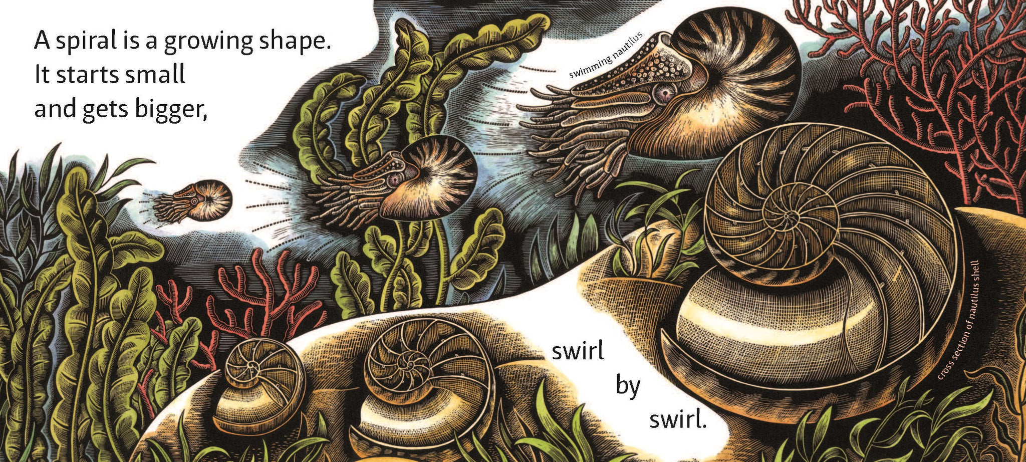With simplicity and grace, Sidman and Krommes not only reveal the many spirals in nature—from fiddleheads to elephant tusks, from crashing waves to spiraling galaxies—but also celebrate the beauty and usefulness of this fascinating shape.