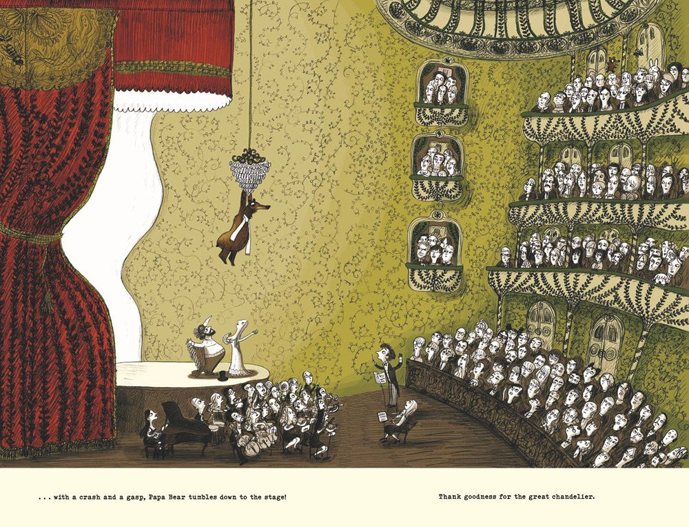 "Sweet" has new meaning in this richly illustrated, immersive picture book about two bears on a big-city adventure. Papa Bear is searching for Little Bear, who has escaped the den. Little Bear is following a bee, because where there are bees, there is honey! When the quest leads both bears into the bustling city and a humming opera house, theatrical hijinks ensue, culminating in a deliciously harmonious reunion. Children and parents alike will savor Benjamin Chaud's lush illustrations, and relish in the book's bonus seek-and-find elements.