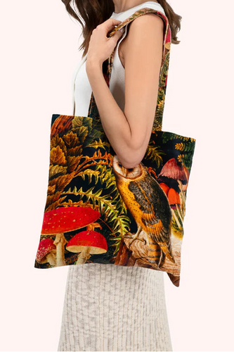 Wild Woodland Owl Velvet Tote Bag