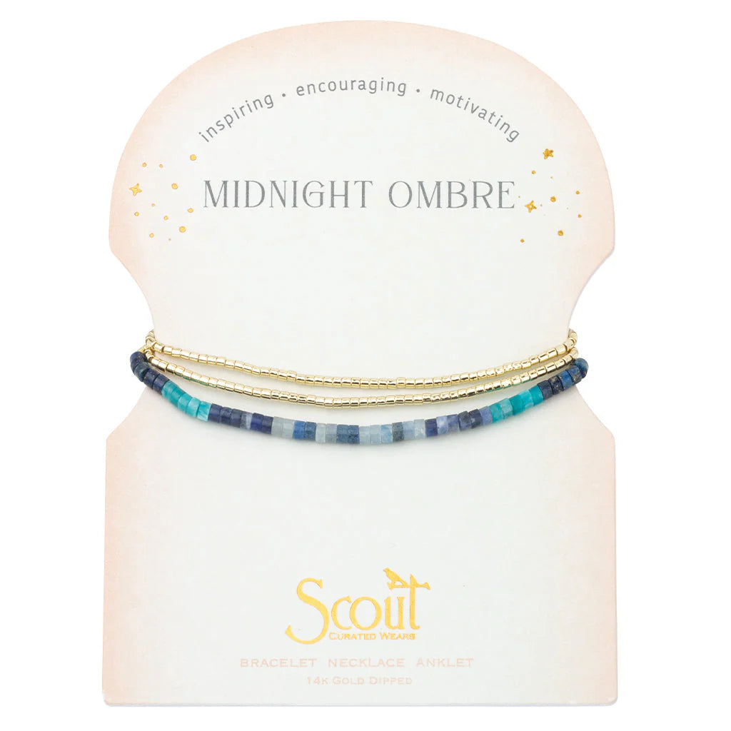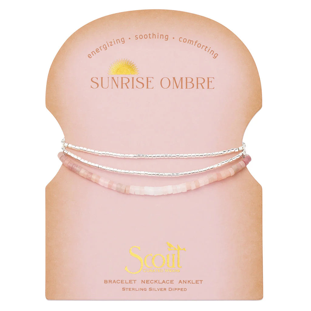 Strung with gracefully gradient semi-precious gemstones. This newest wrap is made to embellish the wrist, ankle or neckline.