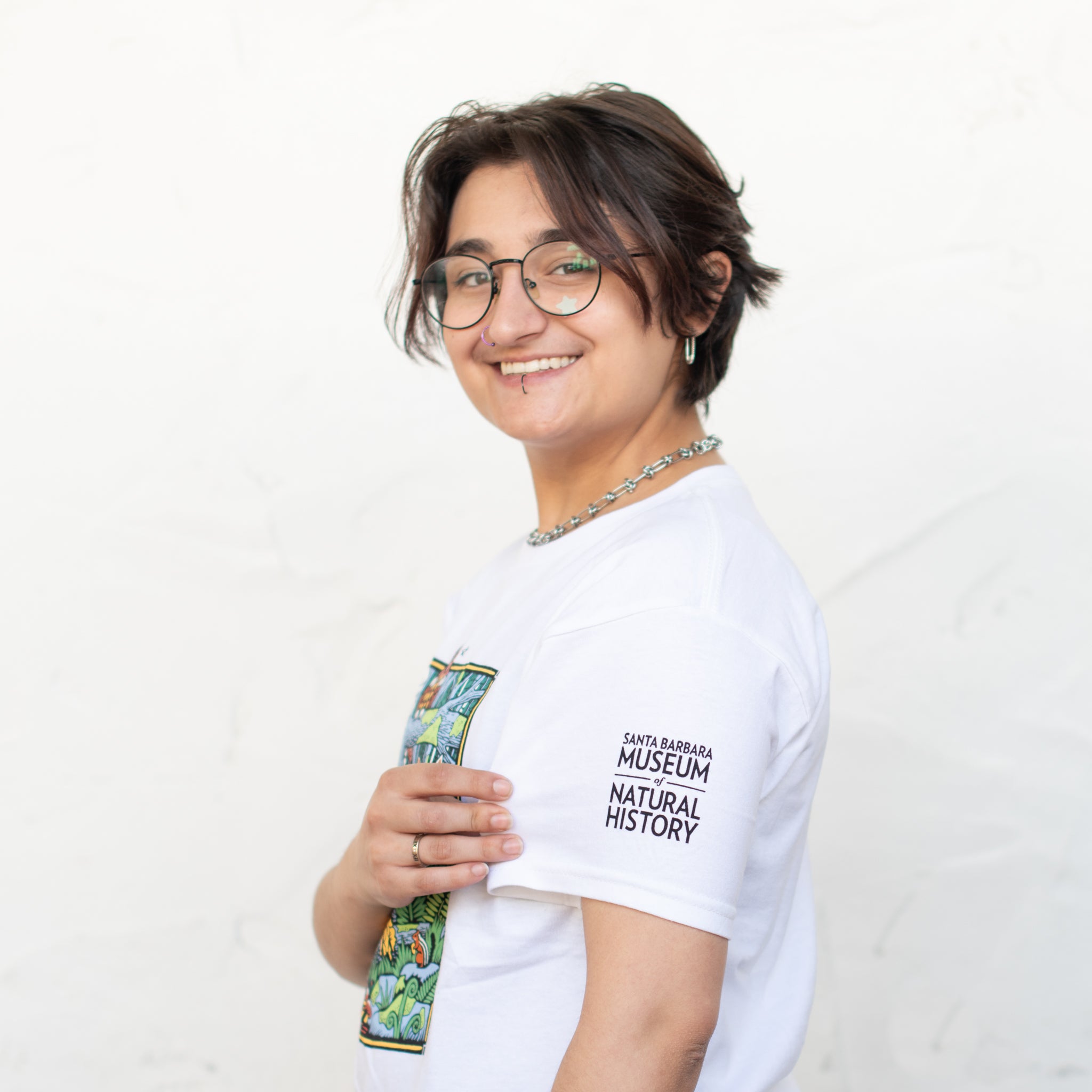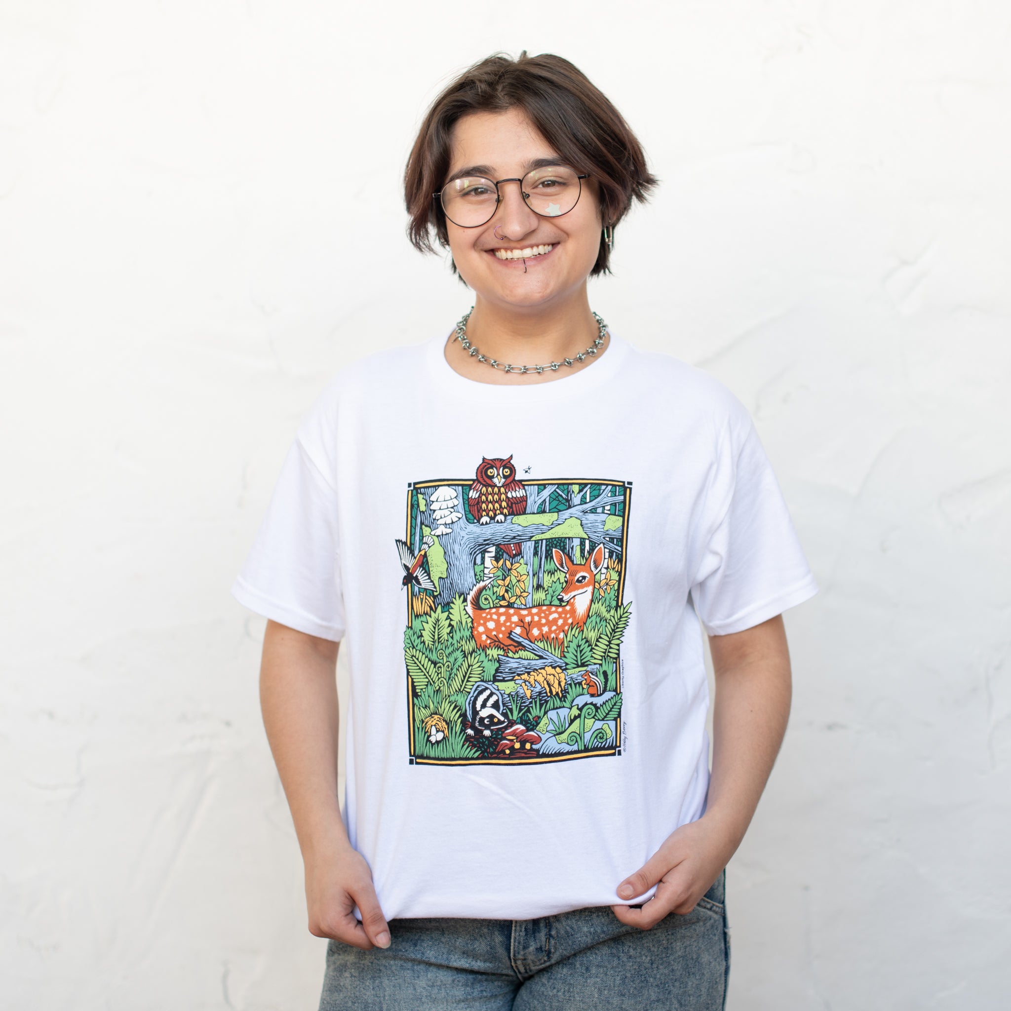 Our model is wearing a Kid's Large.