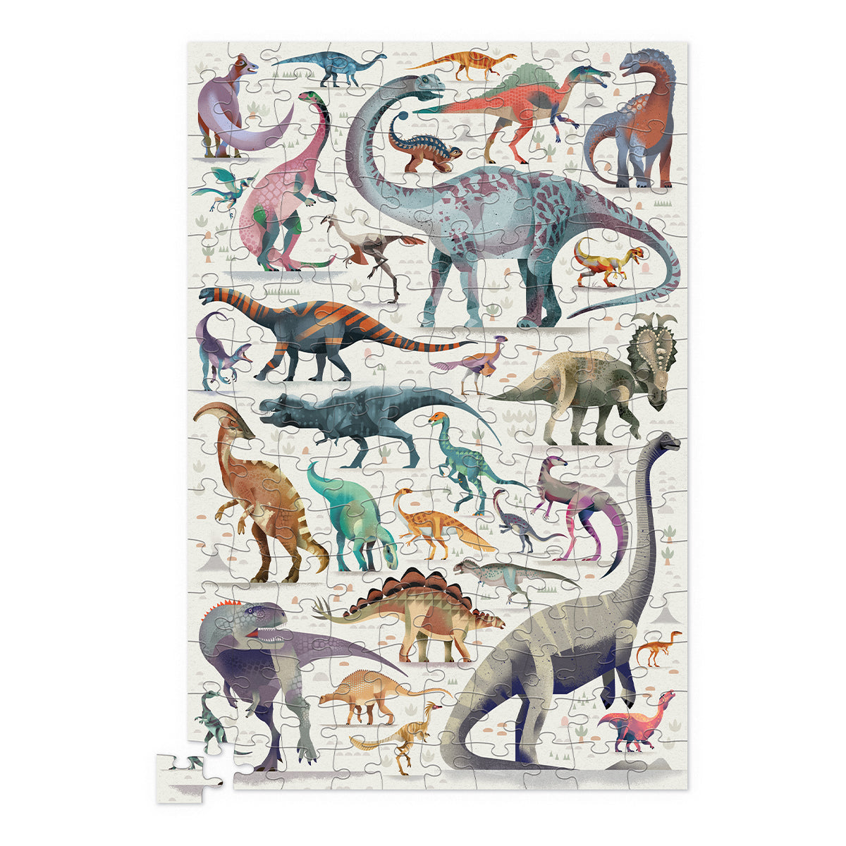 Dinosaur Roar! A wonderful challenging beautifully illustrated 150 pc. puzzle with an array of fascinating dinosaurs. The puzzle comes packaged in a beautiful reusable keepsake tin. These puzzles make for a perfect little extra special gift, party favor or a stocking stuffer. Tucking easily into a backpack, they are also great for travel for kids on the go.